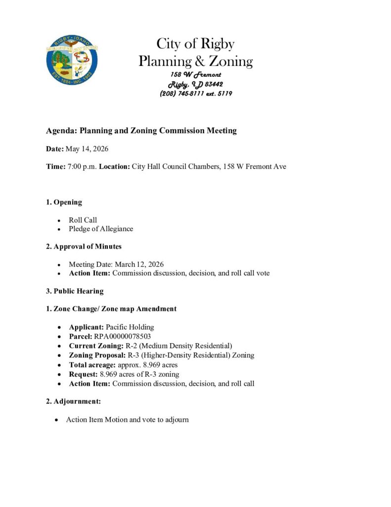 City Hall 158 West Fremont Avenue Rigby, ID 83442