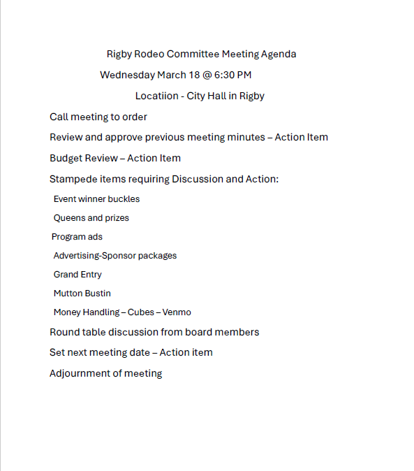 Public Meeting – Rigby Rodeo Committee – Wednesday March 18, 2026 at 6:30pm
